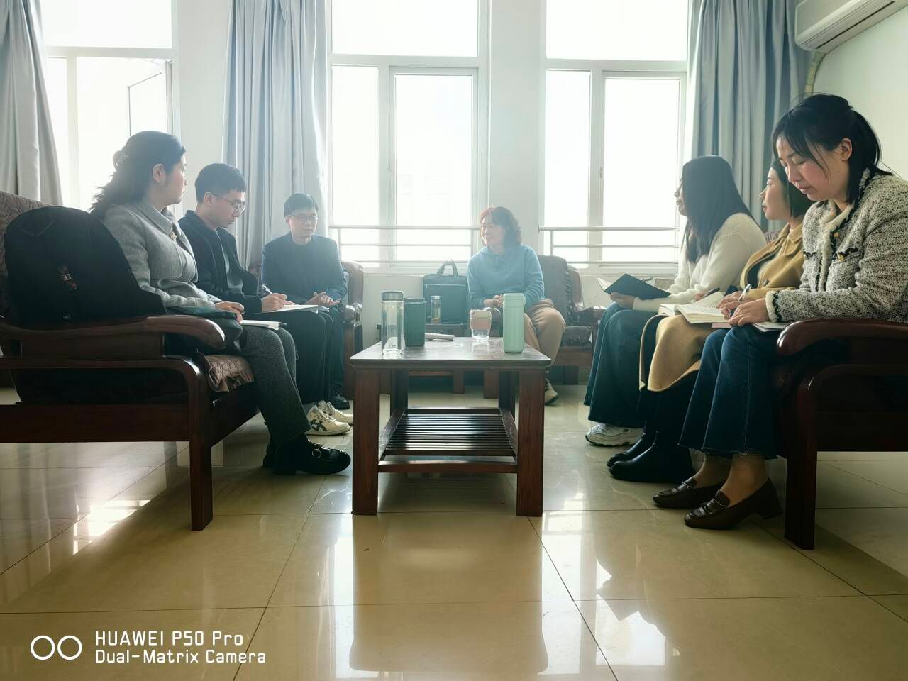 活动结束后,教研室老师在逸夫楼四楼教师休息室对此次教学展示进行了评议。大家一致认为,“多人同上一堂思政课”教学模式很好、很适用,是提高思政课教学质量,保障员工“到课率”“抬头率”的有效教学模式,教研室将不断探索这一教学模式在课堂上的应用。