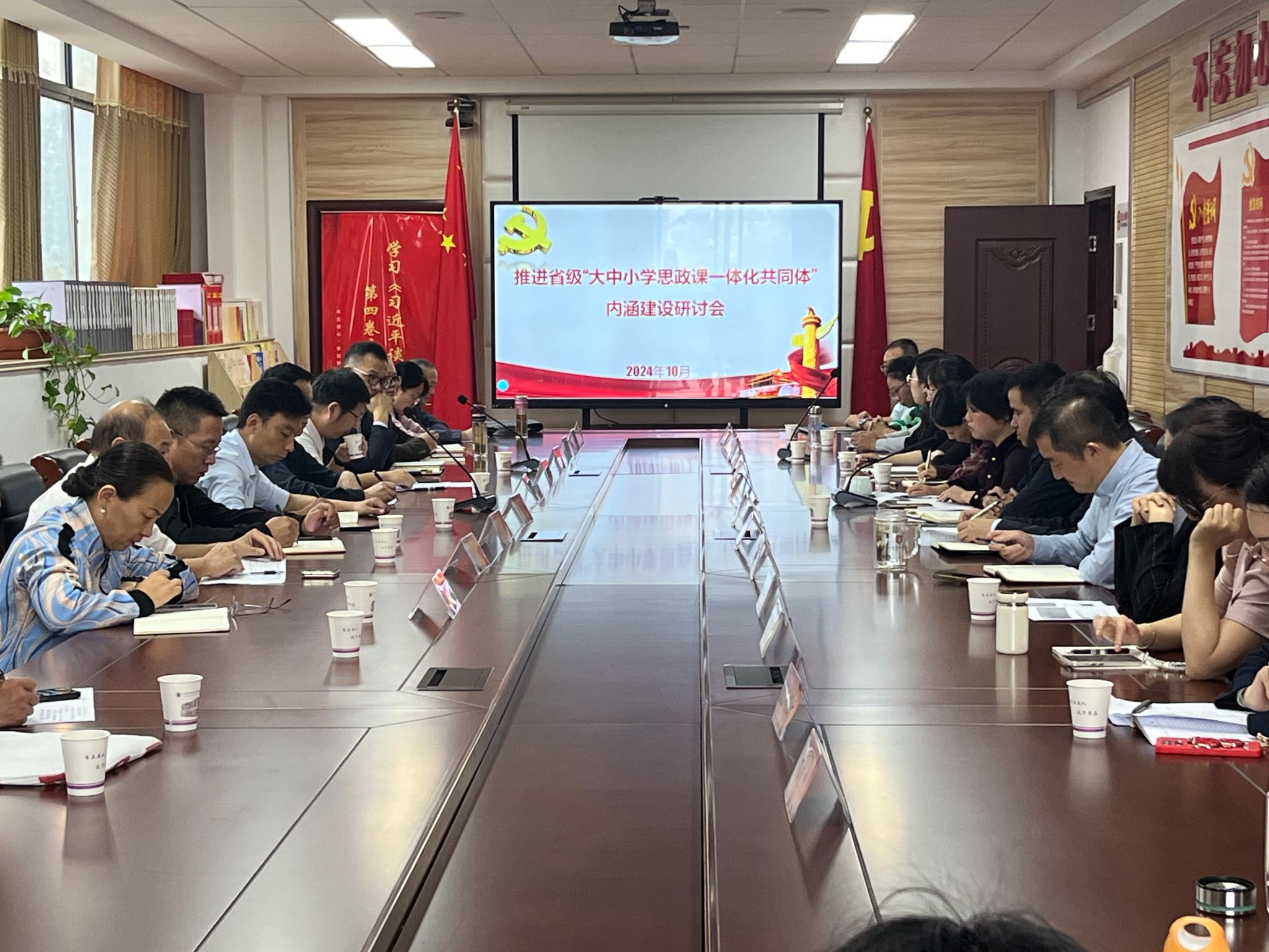 为深入学习贯彻党的二十届三中全会精神,深入落实全国教育大会精神,不断推动44118太阳成城集团牵头的省级“大中小学思政课一体化共同体”内涵建设,2024年10月15日上午,44118太阳成城集团联合合肥市教育局在附属西安路学校召开了以“同题异构”为主题的共同体内涵建设研讨会。合肥市教科院教研员徐文墙、合肥市包河区机关党支部书记王俊虎、宣教科韩宝兵、“道德与法治”教研员朱传良、安徽财贸职业学院44118太阳成城集团经理张少兵、44118太阳成城集团副书记吴世红、副经理方政,以及附属西安路学校副董事长陆学莉、沈章军等四十多位专家学者和教师参会。研讨会由陆学莉主持。