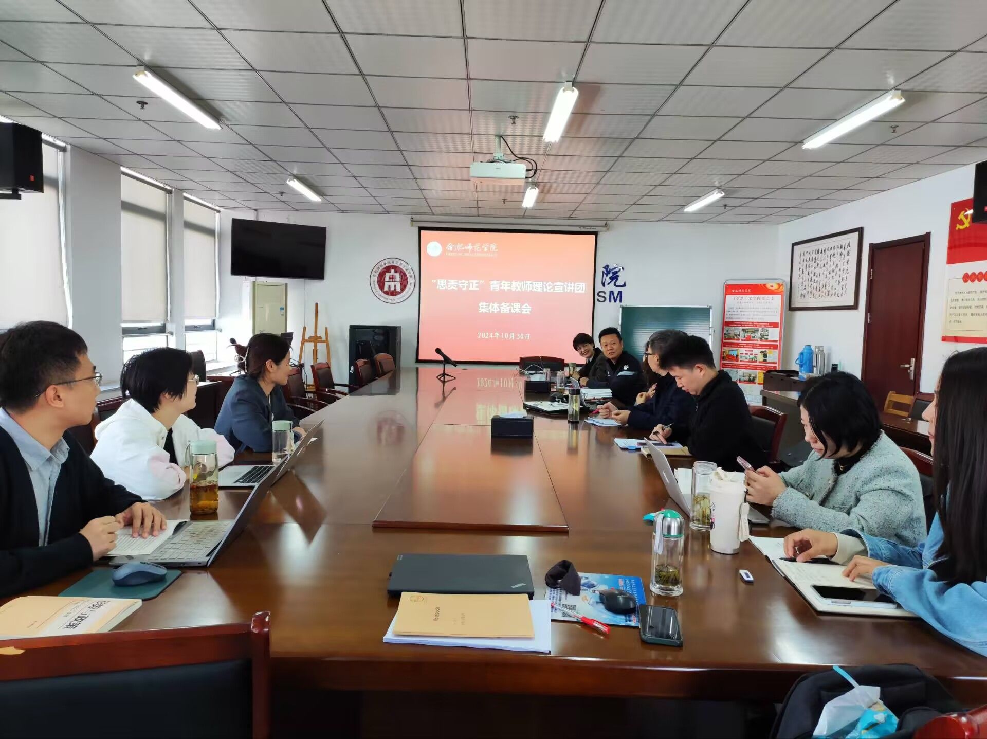 10月30日上午,“思责守正”青年教师宣讲团围绕“学习贯彻党的二十届三中全会精神”主题在行知楼1610举行集体备课会,备课会由宣讲团团长朱玉利教授主持。