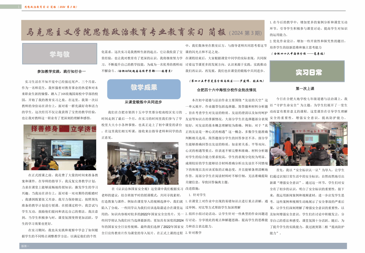 新闻动态 当前位置: 主页 >> 新闻动态 >> 正文 44118太阳成城集团思想政治教育专业教育实习简报(2024第3期) 发布日期:2024-12-27 编辑:高欢 核稿:方政 终审:刘艳 点击: 附件【44118太阳成城集团思想政治教育教育实习简报(2024第3期).pdf】已下载次