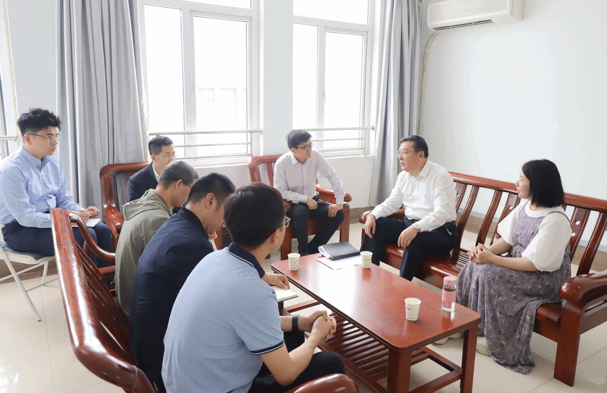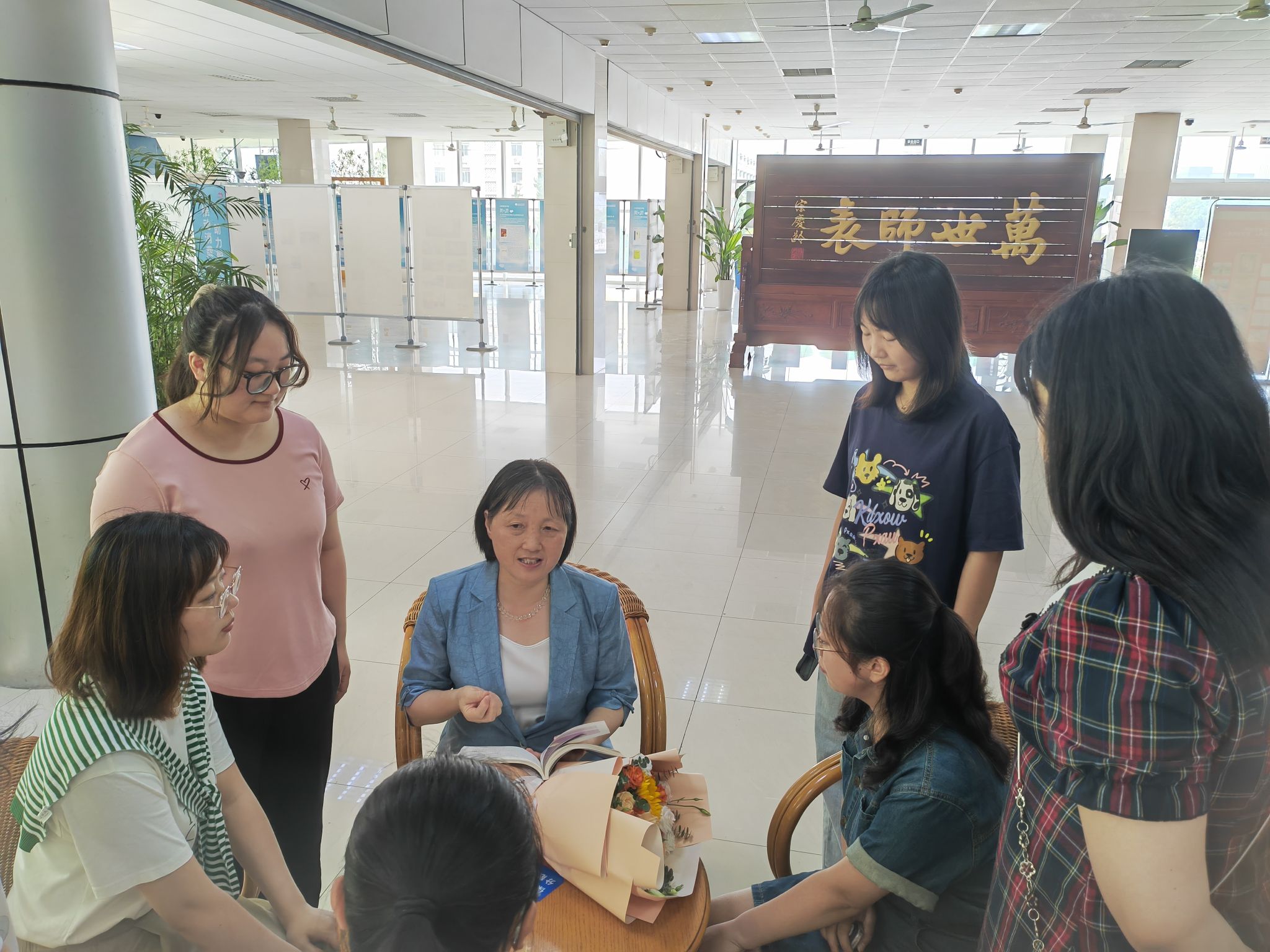 傅文茹老师课后与员工交流听取“思政+专业”授课建议