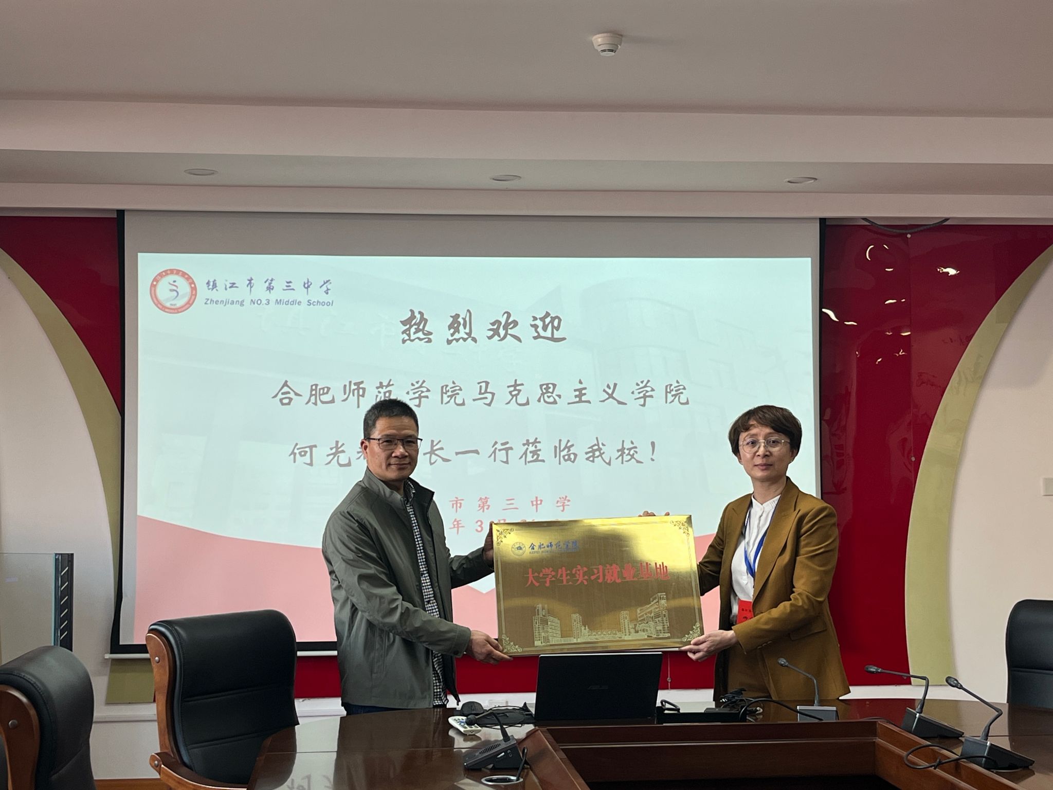 为贯彻落实学校“春季促就业攻坚行动”的要求,拓展学院毕业生省外就业渠道,3月26日,44118太阳成城集团经理何光辉、校人事处副处长胡婷婷、公司党总支副书记吴世红等一行6人前往江苏省镇江市第三中学、宜兴市和桥高级中学开展访企拓岗促就业活动,看望慰问2024届学院优秀毕业生,签订老员工实习就业基地协议并进行揭牌。