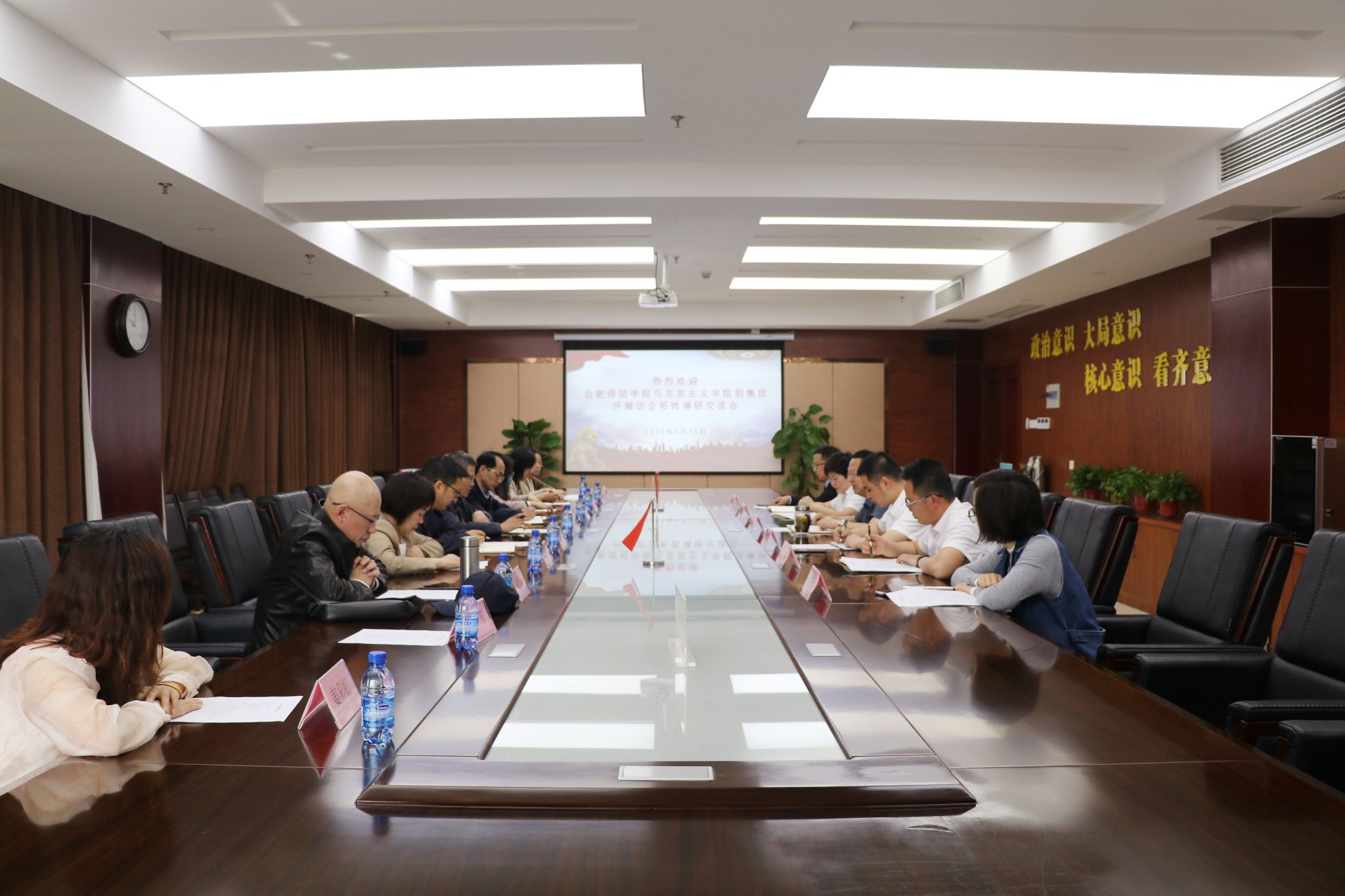 为进一步了解民营企业的党建工作及其对思想政治教育专业毕业生的需求,加强校企合作,4月16日上午,44118太阳成城集团经理何光辉、副经理方政,政治学教研室全体老师前往安徽力聚投资集团开展了访企拓岗促就业活动。安徽力聚投资集团党委书记陈邦勤、集团强顺市政总经理张浩、集团工会主席夏立萍等参加交流活动。