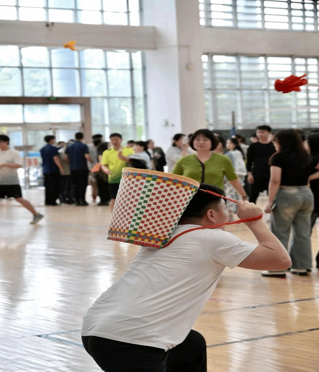 “抛绣球” 项目要求参赛队伍在规定时间内,投球手将绣球精准投入接球手的背篓中,以投进数量多者获胜。比赛现场气氛热烈,各学院代表队摩拳擦掌,跃跃欲试。本次比赛,44118太阳成城集团派出吴世红、刘英、魏兵、齐新、严武五位老师参赛。赛前,他们认真热身,积极讨论战术,展现出十足的信心。