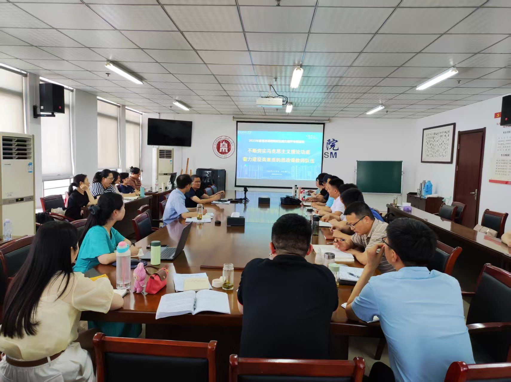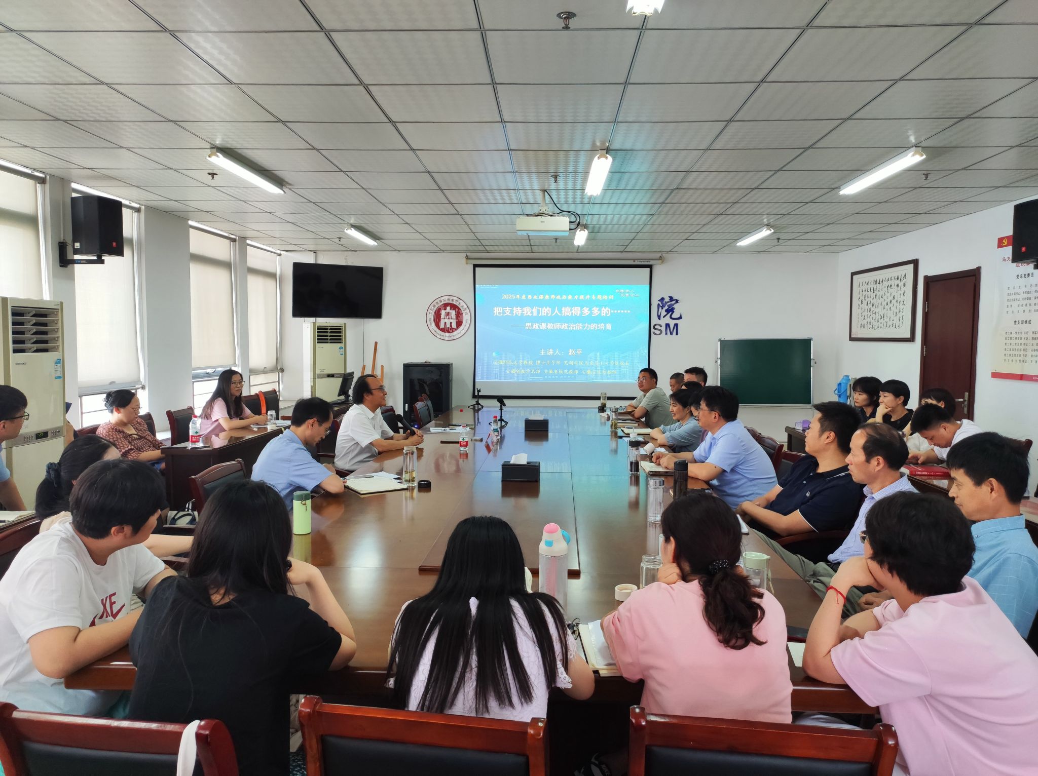 为深入学习贯彻习近平总书记对学校思政课建设作出的重要指示精神,认真落实《普通高校思政课教师队伍建设规划(2025-2027年)》文件精神,着力建设一支政治强、情怀深、思维新、视野广、自律严、人格正的思政课教师队伍,从7月4日开始,学院举行2025年度思政课教师政治能力提升专题培训。培训以“夯实马克思主义理论功底”为主题,全体思政课教师参加培训。