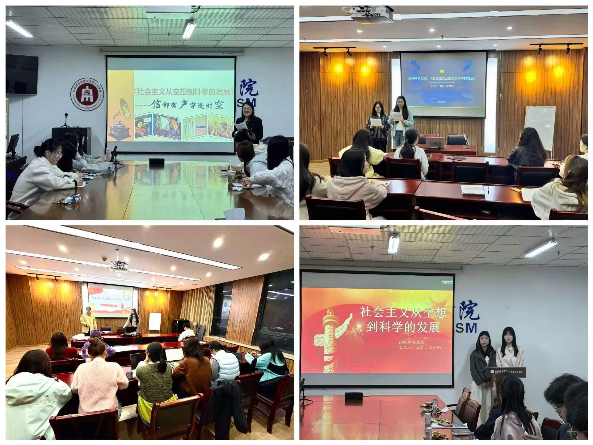 为深化马克思主义经典文本研读,引导研究生在经典研读中筑牢信仰之基,提升马克思主义理论素养,3月31日、4月1日晚,2025级研究生在行知楼1610、1712分四组开展《社会主义从空想到科学的发展》研读交流活动,本次交流会由研究生教学部主任朱玉利主持,2025级全体研究生参与研讨交流。