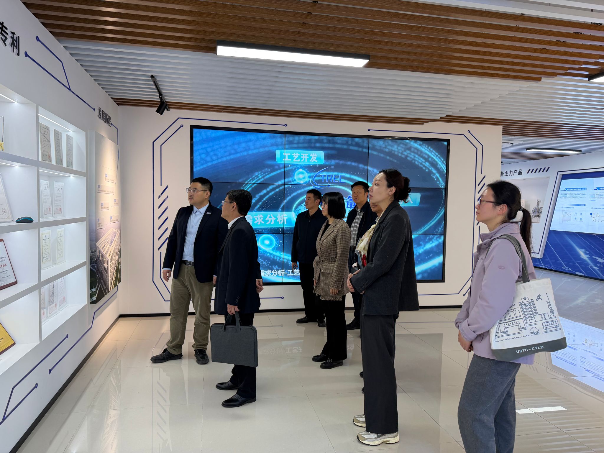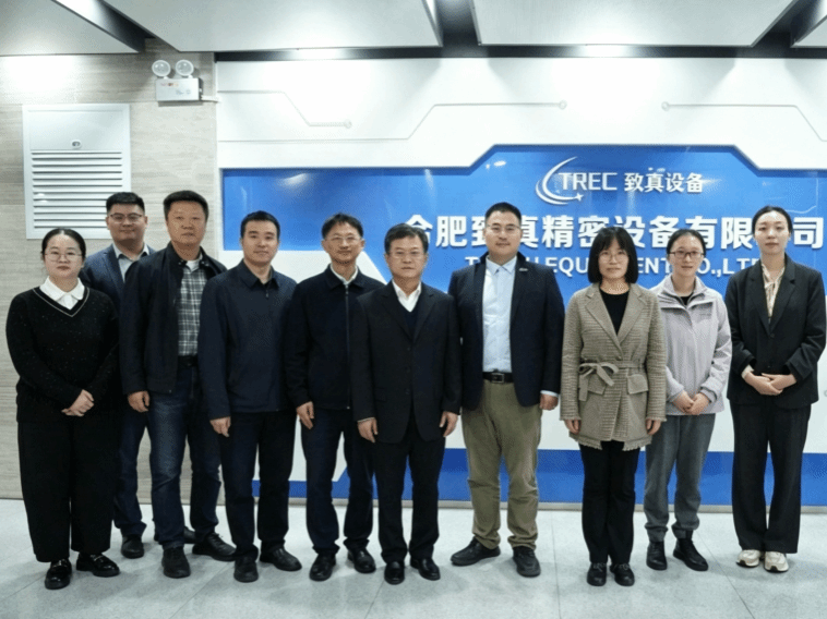 随后,赵帮恚一行来到合肥致真精密设备有限公司,参观了企业设备展厅,实地了解了半导体关键设备研发、自旋芯片设计制造及真空镀膜仿真应用等“卡脖子”技术的国产化替代进程。公司总经理杜寅昌详细介绍了企业的发展历程、核心技术优势以及当前人才梯队建设情况。赵帮恚指出,希望今后能与该公司在实习实训、人才培养等方面深化合作,为毕业生提供更多优质岗位。