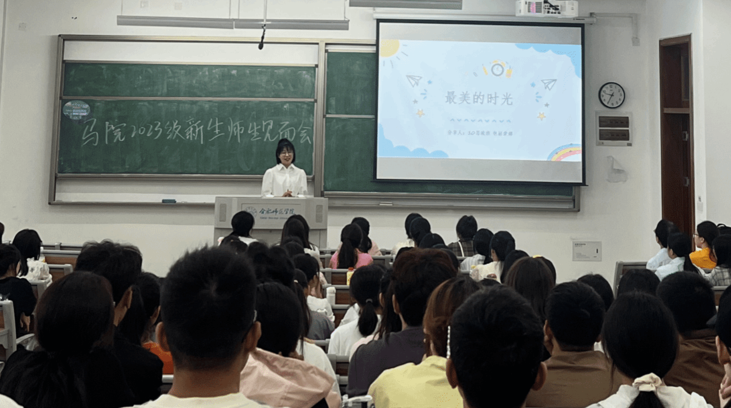 包丽蒙娜的讲座以《最美的时光》为题,满含感情回顾了在母校读书时的难忘时光,与新生分享了从教多年来四个方面的人生感悟。她强调,“不是所有的事情都能如愿以偿,但是任何事情都值得尝试”“你要保证运气来的时候,你还坐在桌上”“不要美化那条从未选择的路,要把脚下的路走成最好的路”“母校教给我们的知识可能已然忘却,但留下的却是最宝贵的财富”。