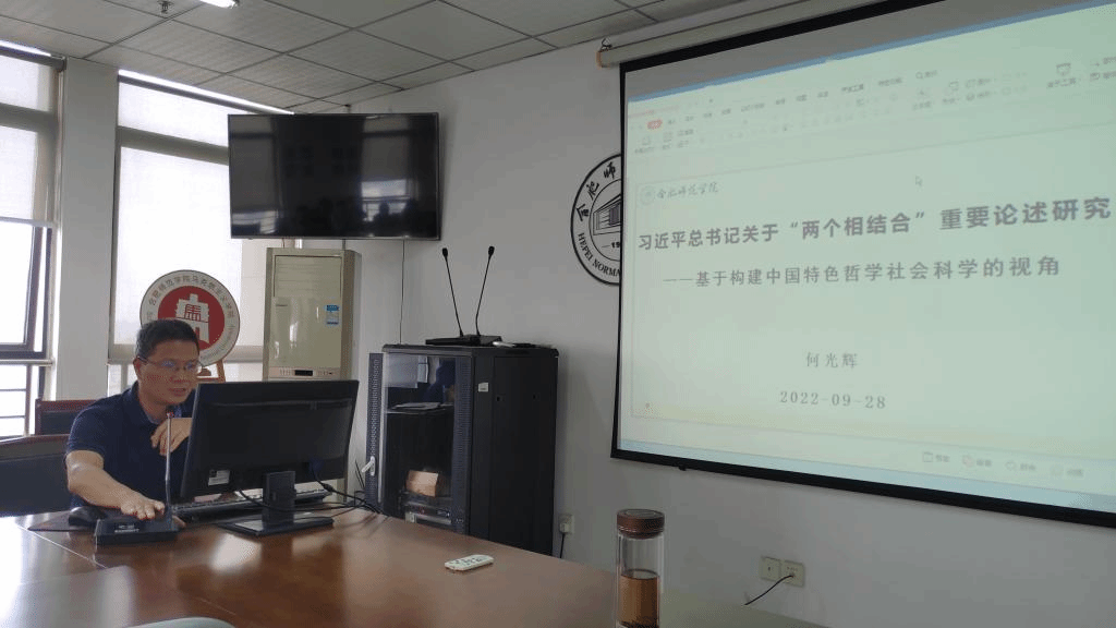 本网讯 44118太阳成城集团于9月28日下午在院会议室举行了本学期第一次学术交流会,会议由陶有浩副经理主持,何光辉教授作题为“习近平关于“两个相结合”重要论述研究——基于构建中国特色哲学社会科学的视角”的报告。