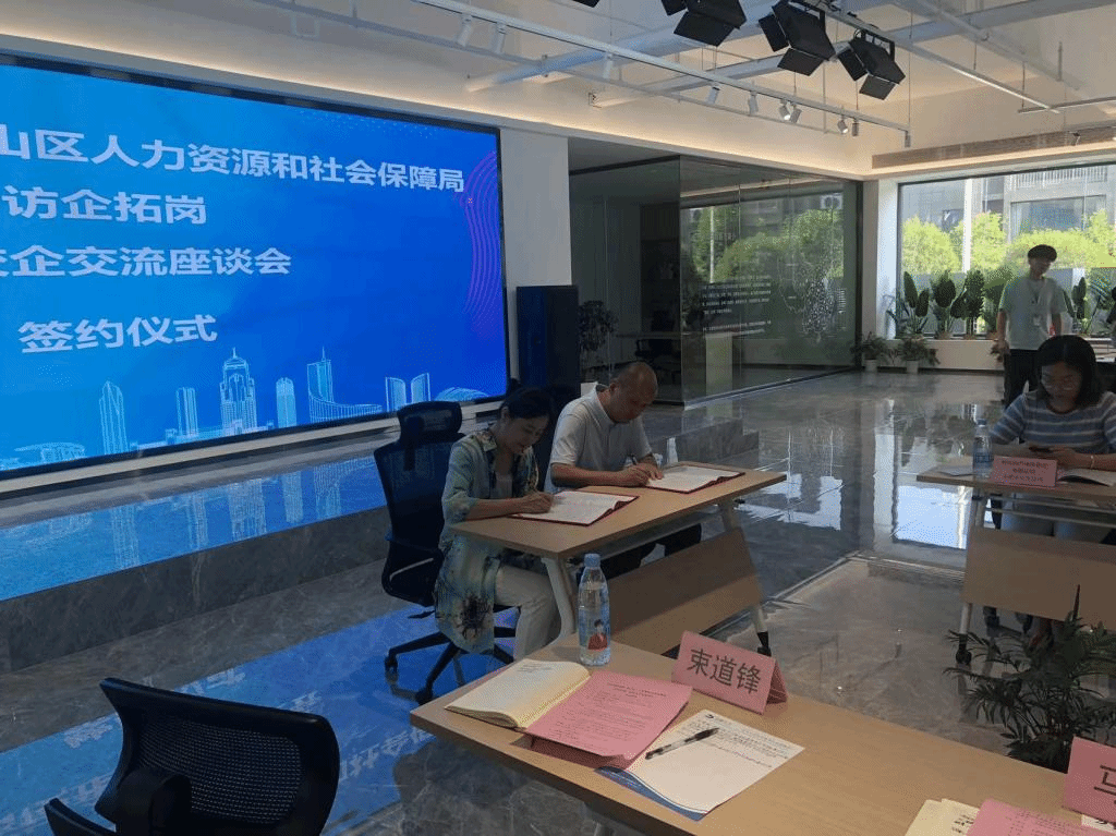 座谈会后马克思主义公司党总支书记同网新科技集团有限公司、正德人力资源股份有限公司、安徽三味婴幼儿照护服务有限公司、合肥市蜀山区正德职业培训学校四家单位签订了就业实习基地合作协议。签约仪式后周端明一行参观了合肥蜀山人力资源服务产业园。(44118太阳成城集团)