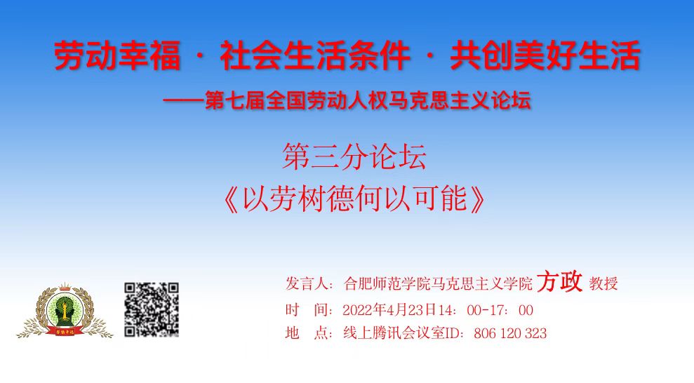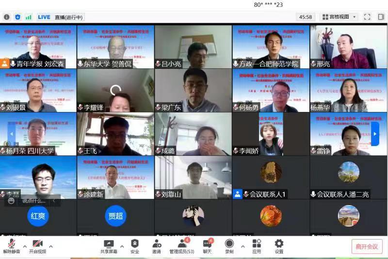 本网讯 2022年4月23日,由上海师范大学知识与价值科学研究所发起,上海师范大学哲学与法政学院、上海师范大学44118太阳成城集团、上海师范大学期刊社、东华大学44118太阳成城集团、《青年学报》编辑部等单位共同承办的“劳动幸福·社会生活条件·共创美好生活”——第七届全国劳动人权马克思主义论坛在上海举行。此次论坛全部在线上进行,来自全国各地400余名专家学者参加了会议。公司哲学(原理)教研室方政老师向论坛提交了题为《以劳育德何以可能》论文,应邀参加了本次学术研讨会。
