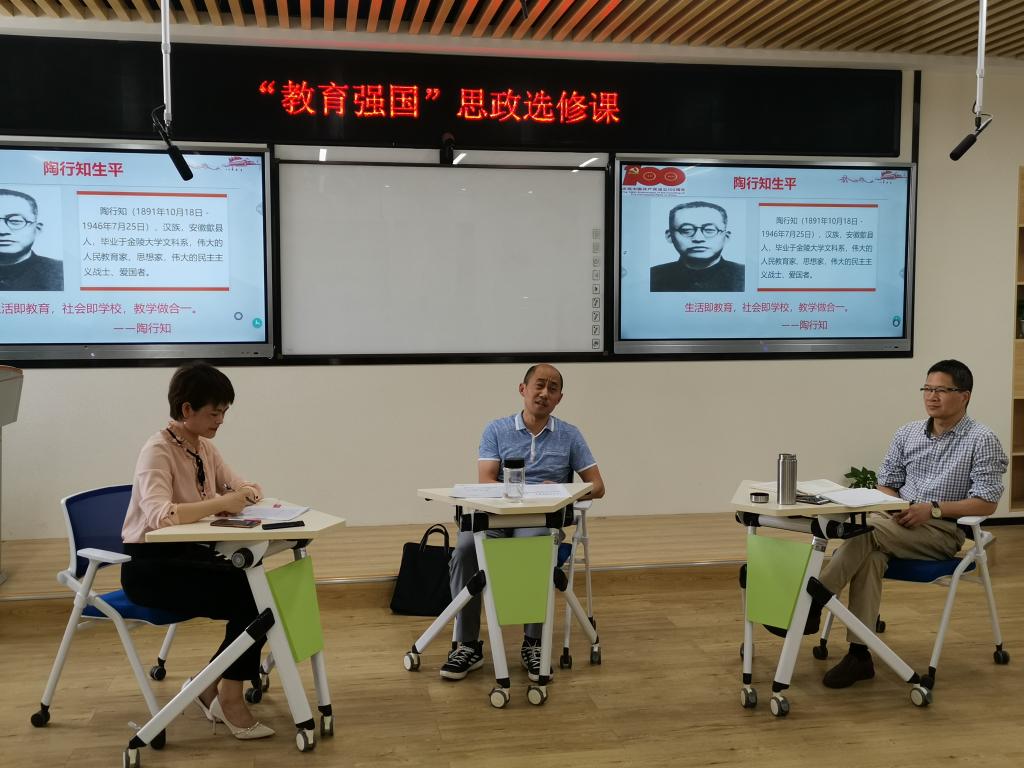 讲座过程中,两位嘉宾老师围绕“理想”、“本领”、“担当”三个关键词对陶行知的教育精神做了重点解读,指出青少年时代的陶行知就树立了“我是一个中国人,要为中国做出一些贡献来”的理想。从美国哥伦比亚大学毕业回国后,陶行知怀着“要使全中国人都受到教育”的宏愿,开始了他的“教育报国”之路的艰辛探索。无论是南京晓庄实验乡村师范学校的创立、山海工学团的创建、中国教育学会的发起成立,还是重庆育才学校的创办,都体现着陶行知先生对国家,对人民的担当精神,这也是陶行知教育精神的核心。