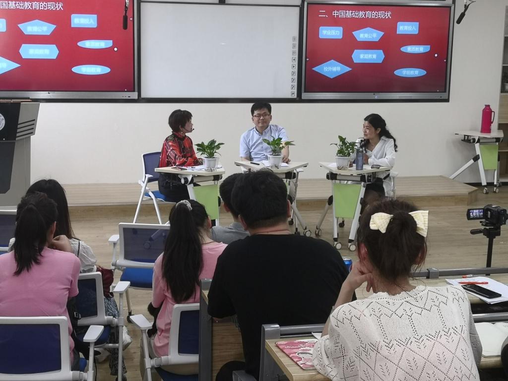 第二部分是本课程的核心部分,嘉宾和同学们围绕这“教育公平”“教育质量”“学业压力”“教育投入”“校外辅导”“家庭教育”“学前教育”等关键词展开讨论。赵含韫、刘英老师从自己孩子的“择校”经历谈到了教育资源分配还不够均衡的问题,党和政府正在着力解决这个问题,包括推进“改薄工程”、“教育集团化”“教师支教”等措施来缩小地域基础教育的差距。周继祥老师主要从介绍新加坡基础教育的分流制度来说明如何提高基础教育质量的问题,社会主义教育的本质是要实现每个人的全面发展,截止2018年,我国高中毛入学率已经达到88.8%,可以说基础教育的规模扩张已经基本结束,下一步是要走内涵建设的道路。关于基础教育的质量建设,近年来党和国家颁布了几个相关文件,中共中央、国务院《关于深化公司产品改革全面提高义务教育质量的意见》、国务院办公厅《关于新时代推进普通高中育人方式改革的指导意见》、教育部等六部门关于印发《义务教育质量评价指南》。近几年的职业教育改革、高中育人方式的改革,更多的强调个性化的教育,符合因材施教、适性扬才的教育原则,拓宽人才的成长之路。讲座期间,主讲嘉宾和主持人充分利用智慧课堂,通过学习通发布问卷、主题讨论等,员工积极参与,广泛讨论,讲述他们的亲身经历,课堂气氛活跃。