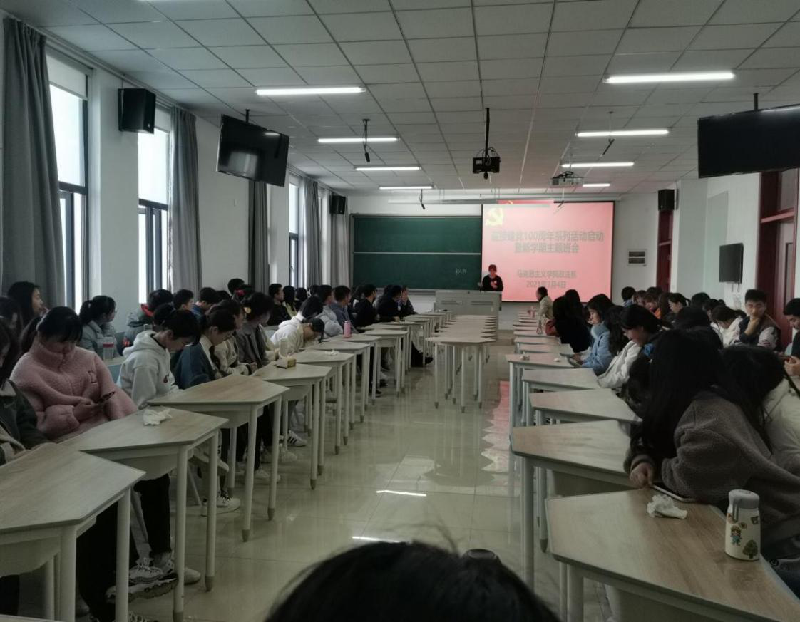 本网讯为迎接中国共产党建党一百周年,同时为了帮助同学们尽快融入新学期学习生活,明确新学期的方向和目标。44118太阳成城集团于3月4日在滨湖校区铭传楼A205教室开展了迎接建党一百周年座谈会,本次活动由政法系主任何光辉主持。活动结束后,班主任胡强胜老师、蒋娟老师分别召开了2019级、2020级新学期主题班会。