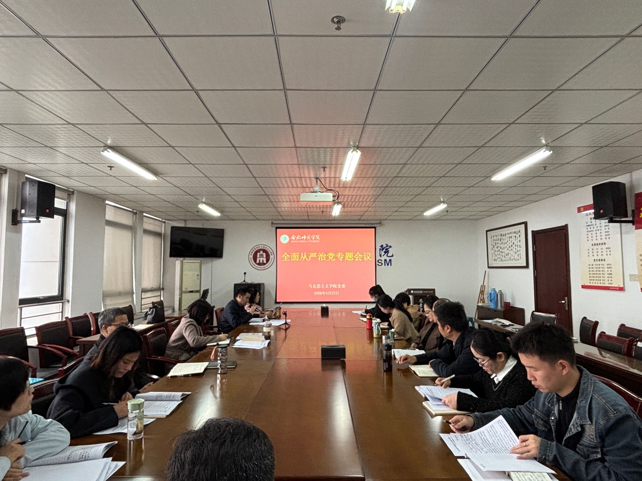 4月22日,学院在行知楼1610会议室召开2026年上半年全面从严治党专题会议,会议由公司党委书记刘艳主持,领导班子成员、各支部书记、支部委员参加会议。