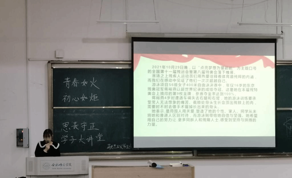 “ 奋斗驱萧索,不负少年时”,主讲人陈妍宇启示我们要回望历史,展望未来。万千平凡的人物为祖国贡献了自己的力量,万千青年为祖国挥洒拼搏着自己的青春。新时代,新要求,我们把准方向,坚定执着不迷失。信仰是沙漠里迷途人的太阳,当代青年应牢固树立马克思主义信仰,继而国家有前途,民族有希望。