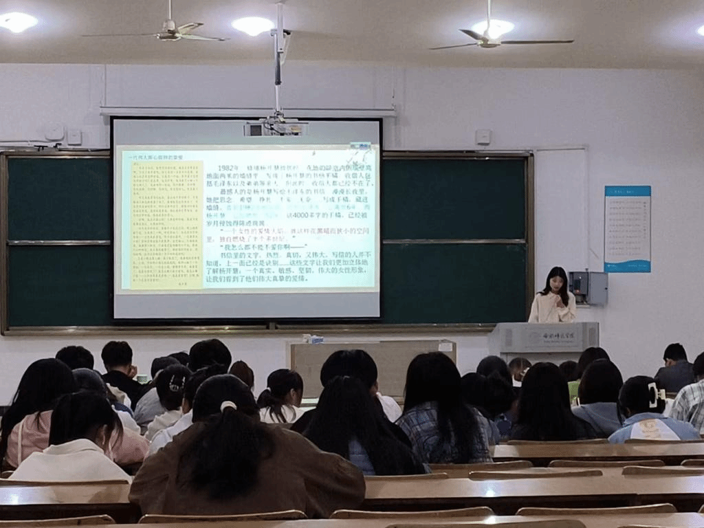 “为有牺牲多壮志,敢教日月换新天。”2022级思想政治教育班邓明薇被杨开慧与毛泽东之间情比金坚的爱情故事感动不已,她为同学展现了时代洪流下相知相守的爱情故事,最终为民族大义牺牲自我的伟大英雄精神。