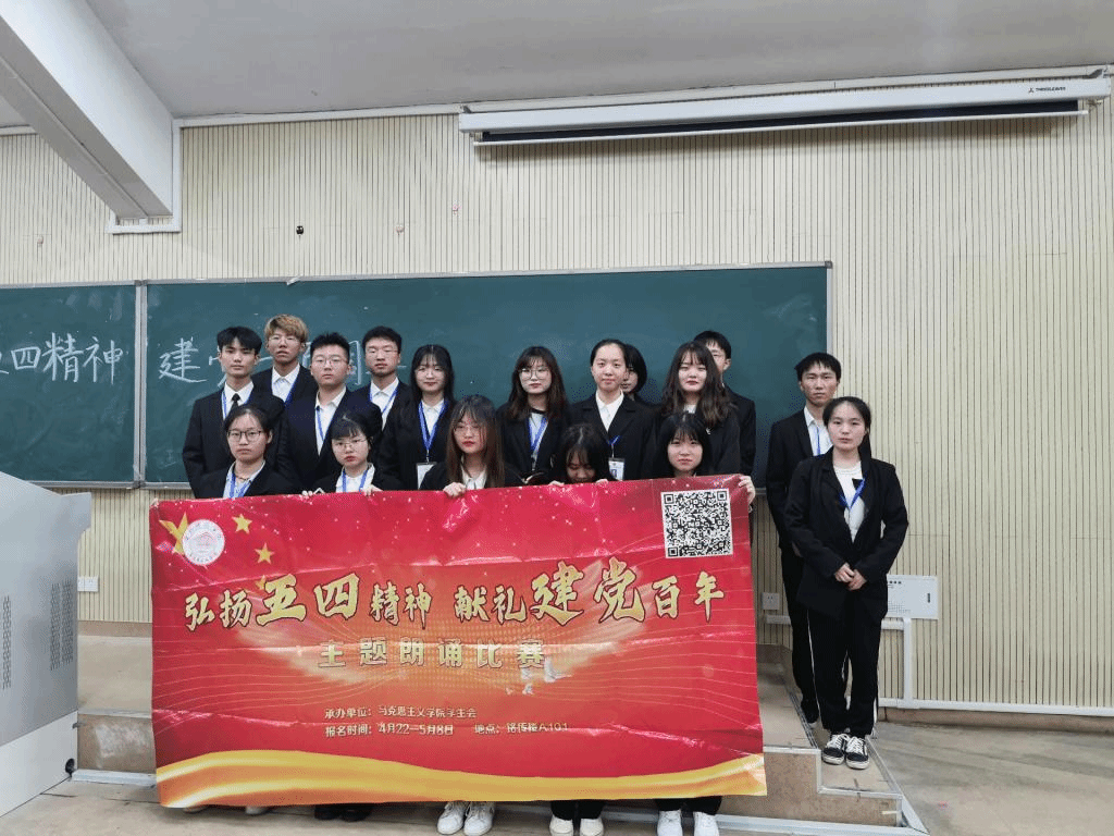 本次比赛共分为主题朗诵、评委点评与颁发奖状三个环节。比赛在黄凌星同学一首铿锵有力的《五四礼赞》中开始,该诗以其深刻的思想,积极向上的态度和朗朗上口的诗风指引新时代的“五四青年”坚定信念、创新进取、矢志不渝的恪守自己对祖国明天的承诺;“我的事业,就是要成为太阳的一生太阳,他无比辉煌,无比光明。”,苏铭同学嘹亮的声音将情感与朗诵完美结合,迅速感染了在场的每一位同学;侯思芳同学以满腔热血融入在《建党百年,初心不变》中,“生逢盛世,吾辈青年当携干将之志,迎时代潮流,助吾国茁壮成长!”;吴姝欣同学咏诵着《不忘初心》,那动情的声线仿似饮泣诉说着她的坚定不移;张文丽同学自信且骄傲地向大家展示《我的祖国》,赞颂伟大的祖国立即激起了同学们无限的崇拜。12位选手的认真准备与出色发挥,让同学们了解到祖国的百年历史,坚定了大步向前走的信念。选手们的朗诵时而低沉,时而激昂,台下不时发出雷鸣般的掌声与喝彩,活动现场庄重而热烈。在活动末尾,评委们高度赞扬了选手们的表现,也为各位选手提出了自己的建议。最后,选手们与评委合影留念,“弘扬五四精神,献礼建党一百年”主题朗诵比赛圆满结束。