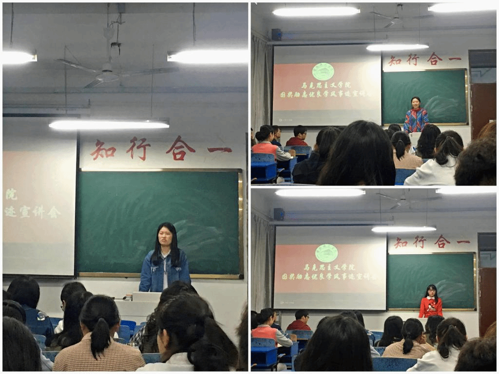 六位宣讲员工分别是国家奖学金、国家励志奖学金和校内奖学金的获得者及省、校级师范生技能竞赛的优秀代表。在此次宣讲会上她们向同学们分享了在学风建设的过程中体会与感悟,用生动的事例告诉大家所有努力都不会被辜负,越努力,越快乐,越幸运,越成功。