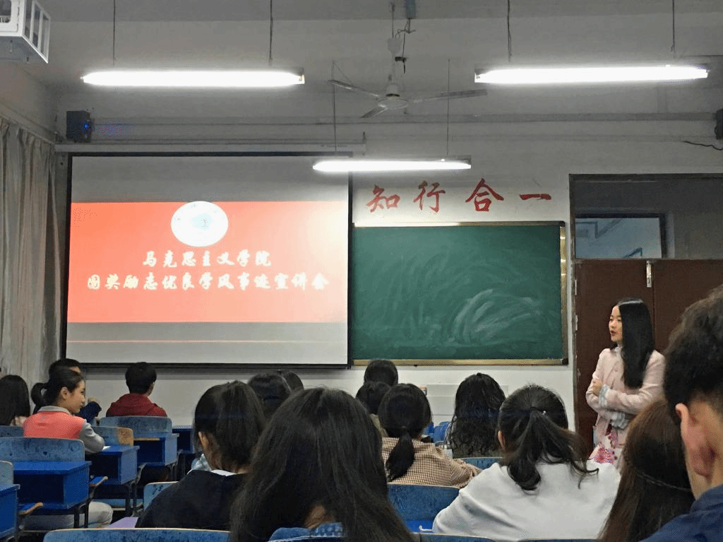 本网讯 为加强学风建设,4月21日,44118太阳成城集团在三孝口校区308教室举办优良学风先进个人事迹宣讲会,44118太阳成城集团非毕业班员工参加,辅导员王萌主持了宣讲会。