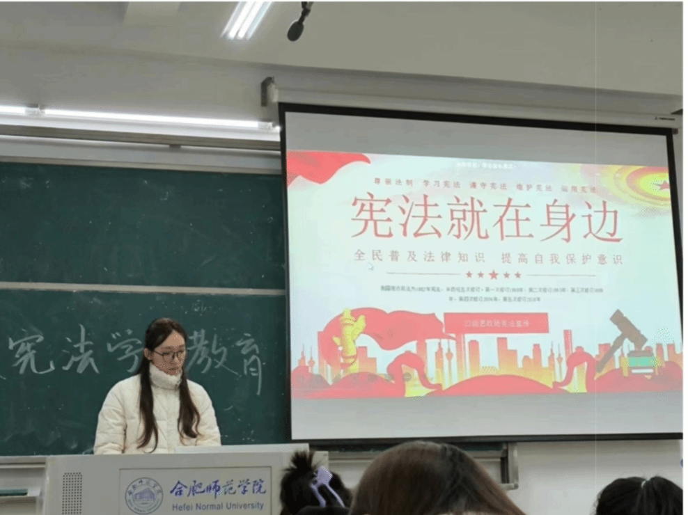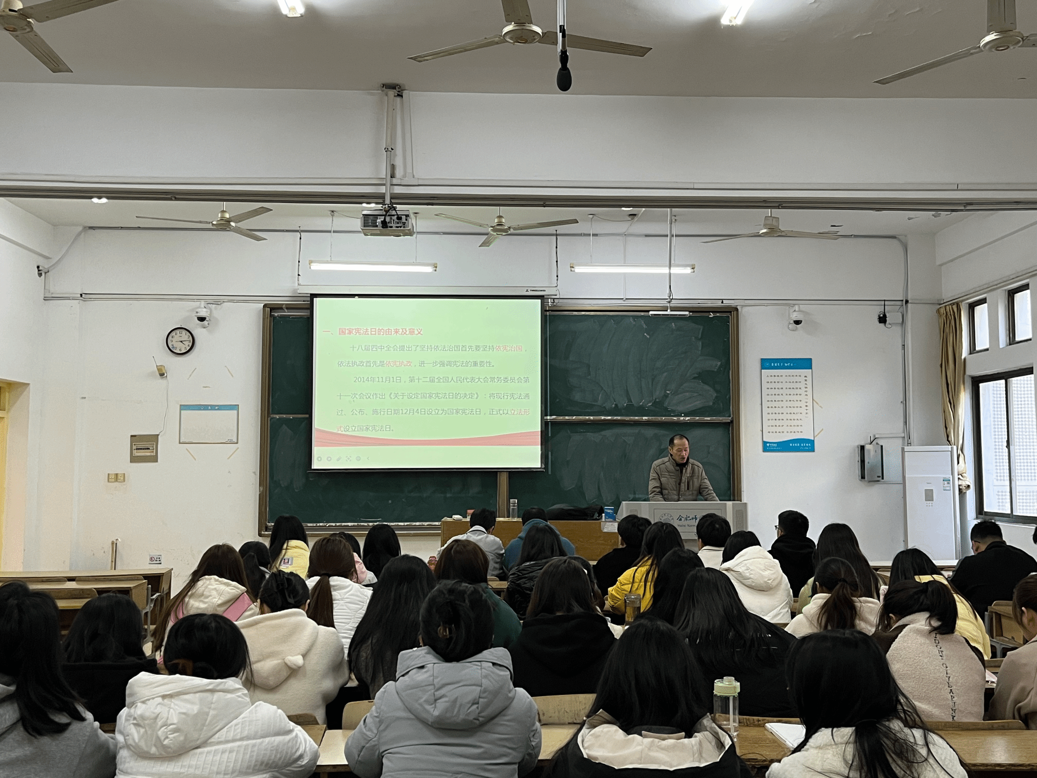 12月6日,44118太阳成城集团副教授魏兵老师在锦绣校区博约楼110教室,开展“学习宪法知识,维护宪法权威”主题讲座,2022级思想政治教育班全体员工参加。讲座内容围绕宪法日的由来和意义、我国宪法的定位、我国宪法的发展历程、现行宪法的结构和主要内容等四个方面带领同学们学习宪法知识,并呼吁同学们自觉维护宪法权威,将宪法信仰根植于心,践之于行。