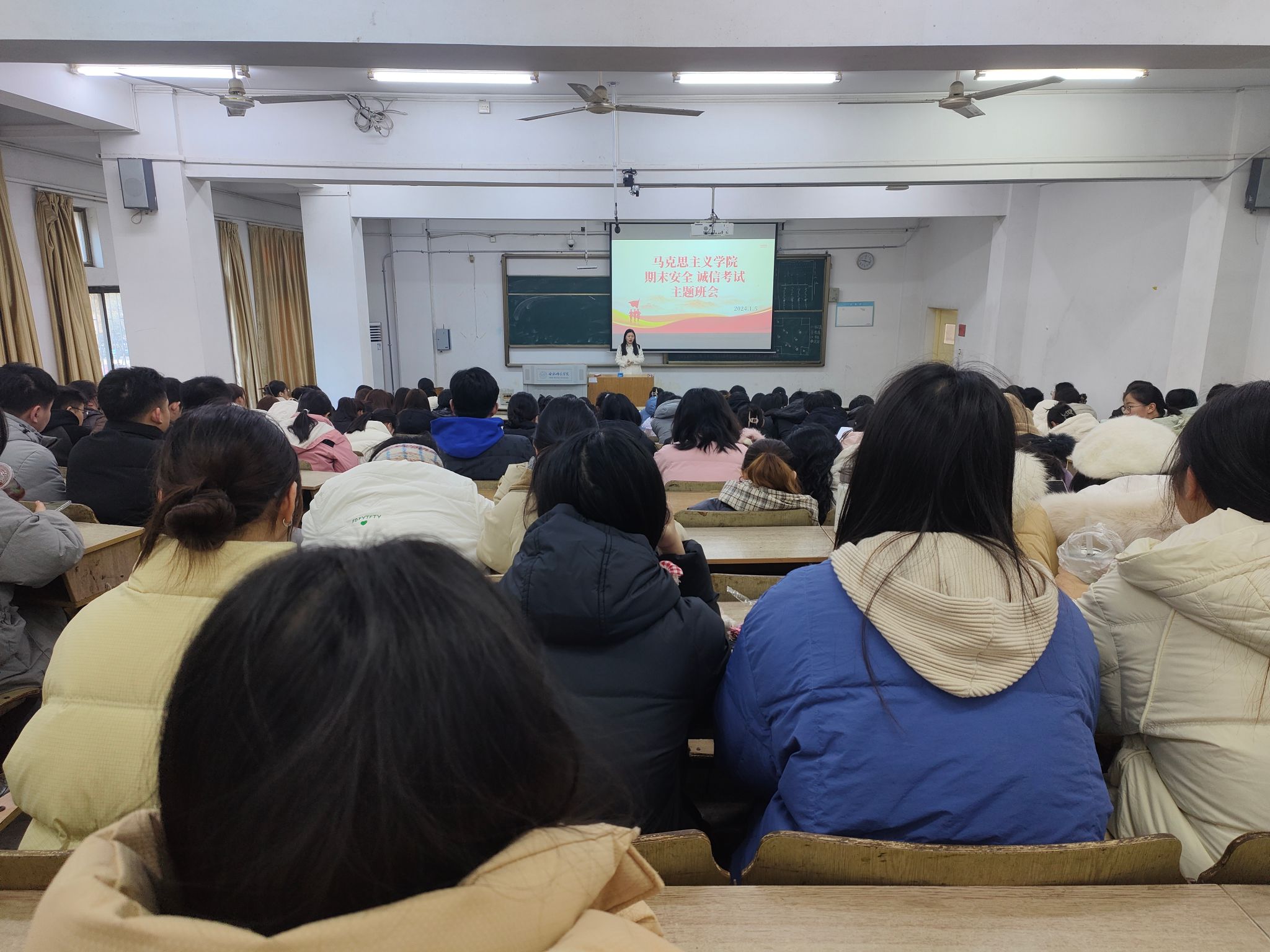 为提高员工的安全防范意识,同时进一步加强学风建设,增强员工的诚信意识,44118太阳成城集团于2023年12月27日在滨湖校区铭传楼A309教室、2024年1月5日在锦绣校区博约楼111教室,面向全体员工召开期末安全和诚信考试主题班会,会议由辅导员王萌主持。