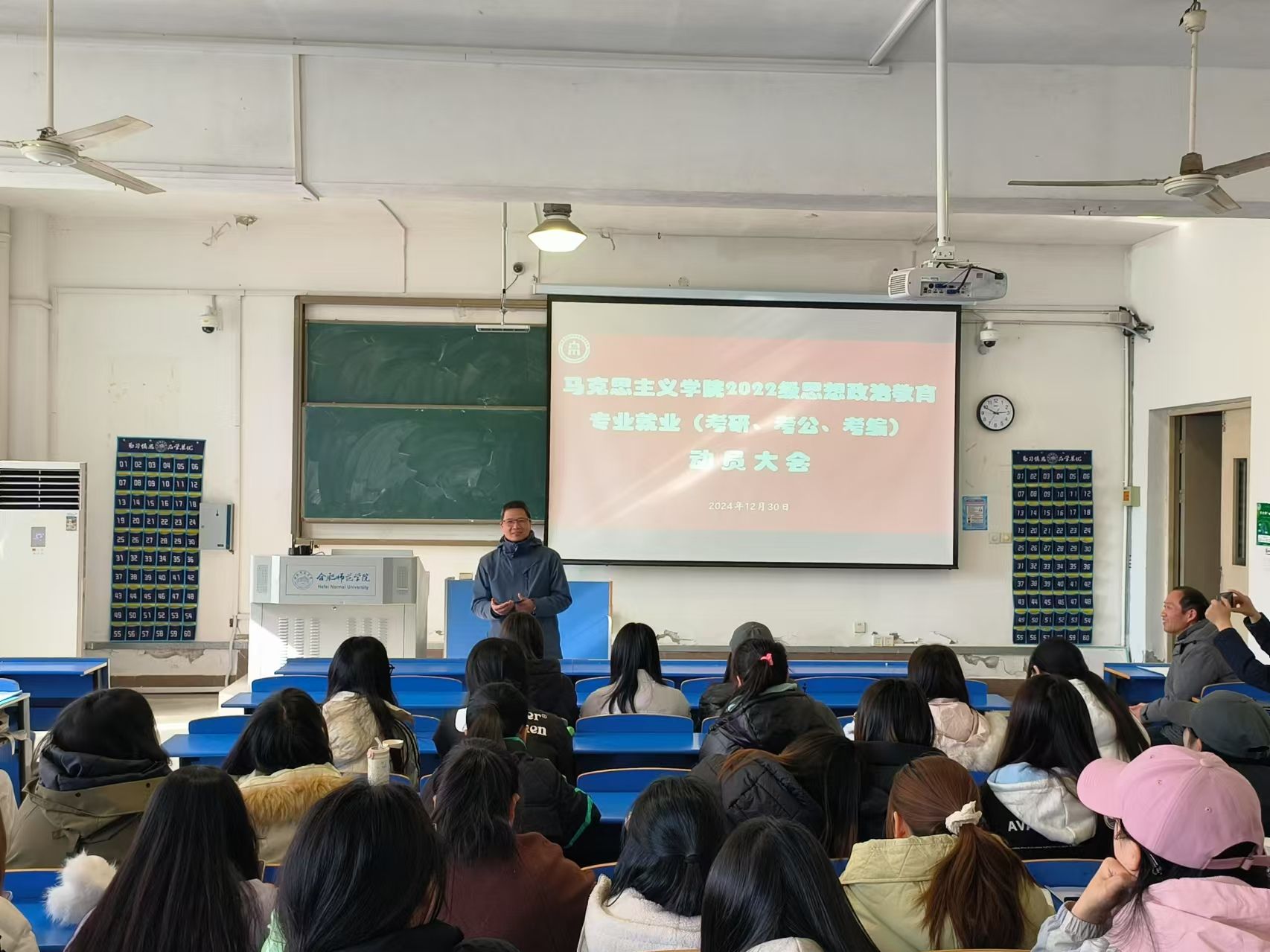 为全面推进学院2022级思想政治教育专业就业工作,引导员工树立正确的就业观念,提高就业积极性和主动性,12月30日上午,44118太阳成城集团在逸夫楼A105教室召开2022级思想政治教育专业就业(考研、考公、考编)动员大会。44118太阳成城集团经理何光辉出席会议,2022级思想政治教育专业全体员工参加会议。
