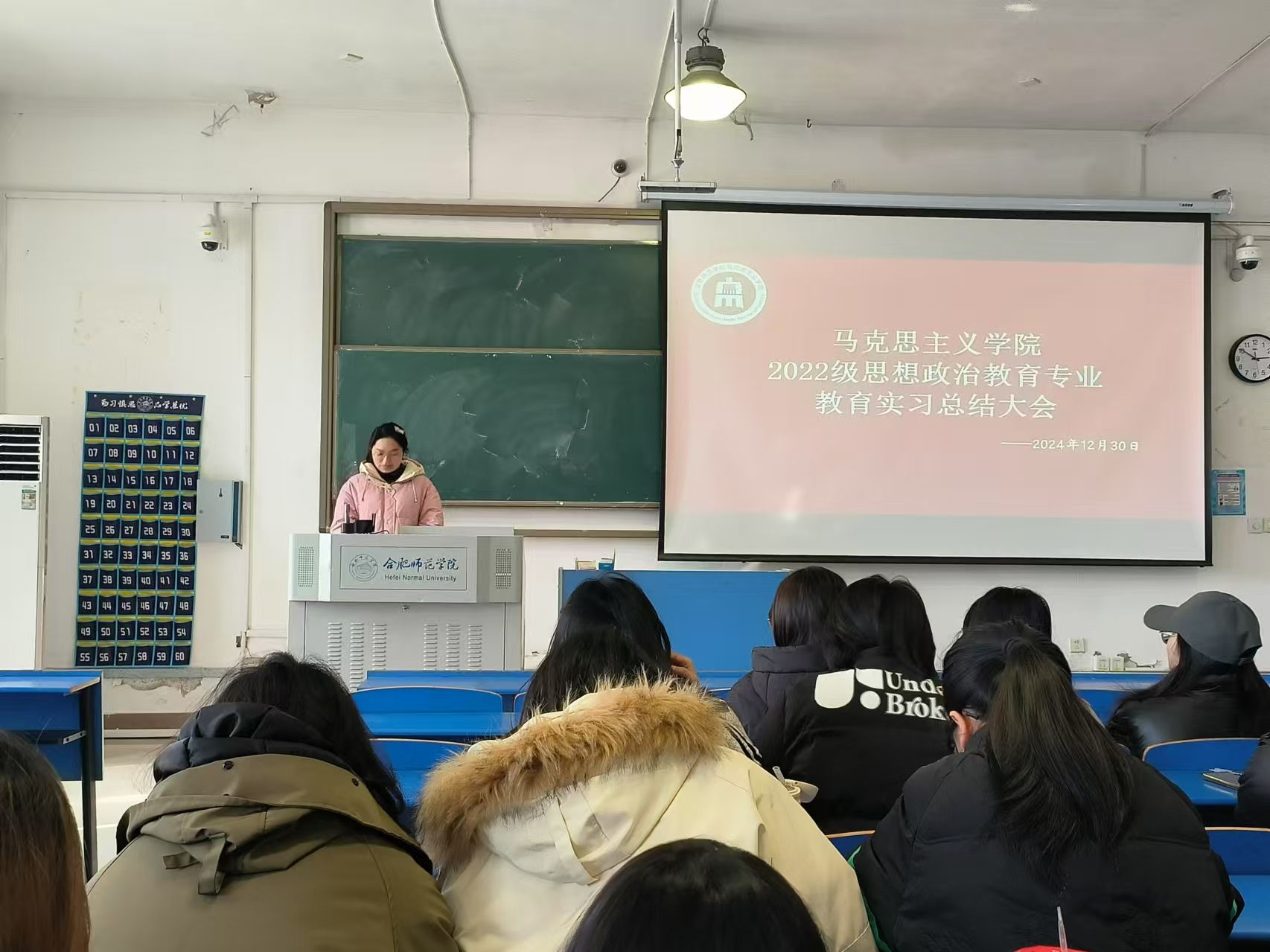 12月30日上午,44118太阳成城集团2022级思想政治教育专业教育实习总结大会在逸夫楼A105教室举行。副经理方政以及2022级思想政治教育专业全体员工参加了本次会议。会议由实践教学部主任魏兵主持。