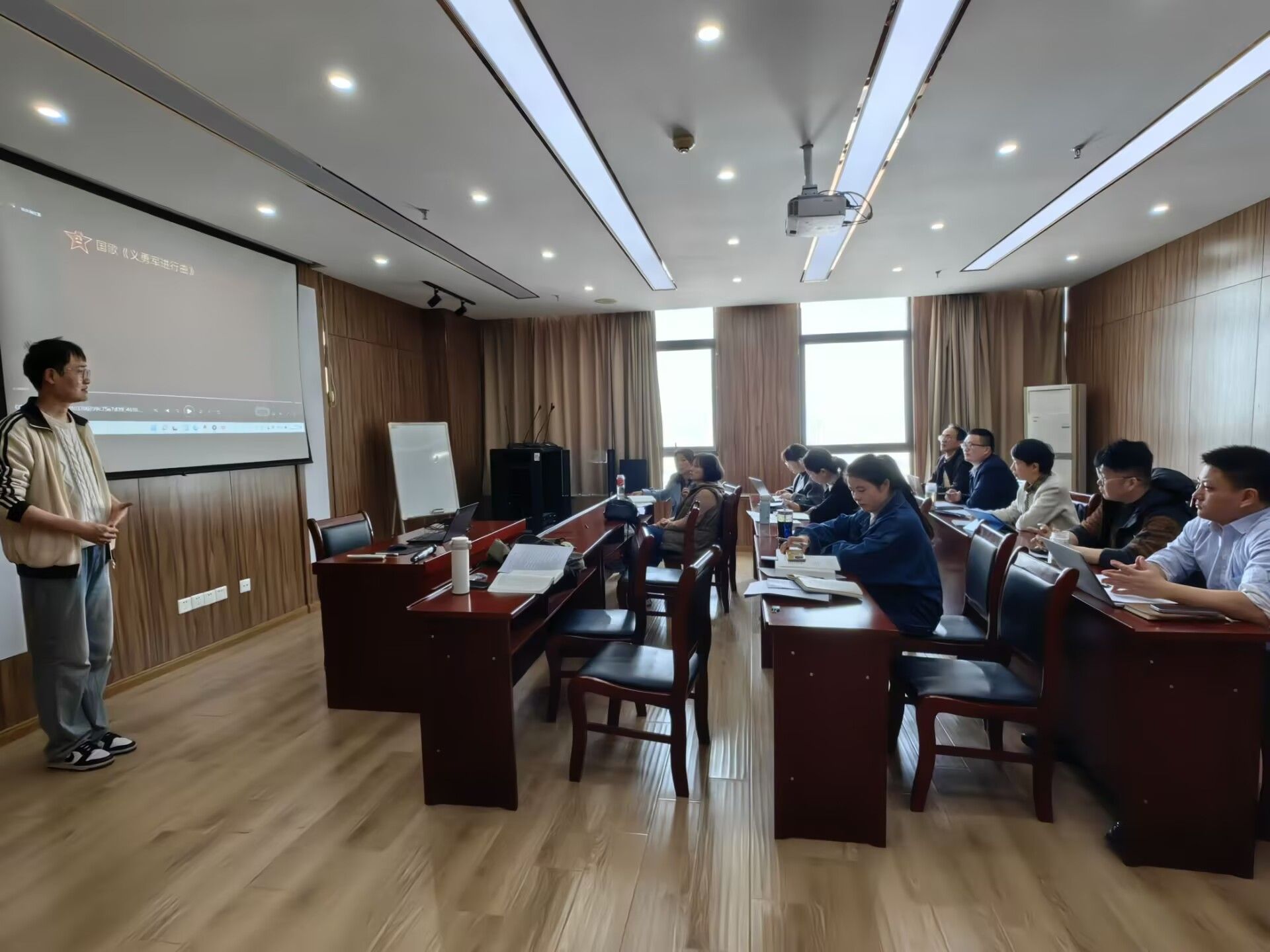 随后,备课会聚焦“全国两会精神融入‘纲要’课教学”核心议题展开深入研讨。与会教师一致认为,要紧扣“十五五”开局、新质生产力、民生福祉保障等两会核心内容,找准与课程知识点的融入节点,通过专题教学、案例解读等方式,将党的创新理论最新成果转化为鲜活教学素材,实现史论结合、以史鉴今,引导员工深刻理解中国近现代历史发展逻辑,形成正确的历史观和政治认同。