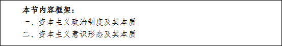 资本主义国家的职能和本质、资本主义的民主制度及其本质(重点)、资本主义意识形态的本质(难点)。