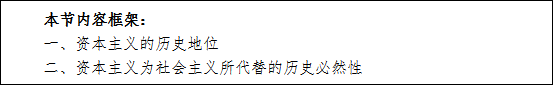 资本主义的历史地位(难点)、资本主义为社会主义所代替的历史必然性(重点)。