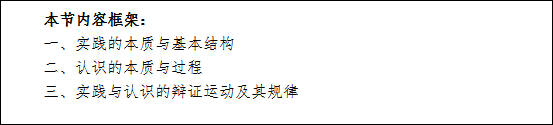科学的实践观、实践在认识中的决定作用、能动反映的基本特点(难点)、从实践到认识(重点)、从认识到实践。