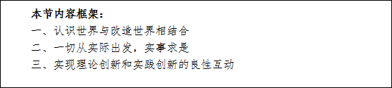 改造世界、改造主观世界(难点)、认识世界和改造世界必须勇于创新、一切从实际出发是马克思主义认识论的根本要求、实事求是是中国共产党思想路线的核心(重点)。