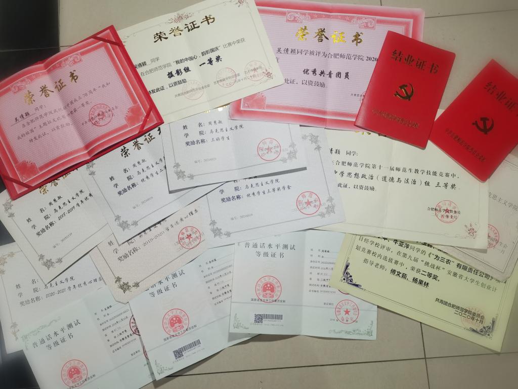 据了解,在校期间这四位同学也表现优秀,获得众多奖项。吴倩颖参加的老员工创业创新训练项目获国家级立项,同时也是优秀共青团员和心理委员,获得校二等奖学金和校征文比赛和摄影比赛一等奖。周慧敏获得过校二等奖学金和三等奖学金,校三好员工,以及优秀实习生荣誉。李明慧同学获得校三等奖学金和优秀共青团员。牛亚萍获得“挑战杯”安徽省老员工创业计划大赛二等奖,校三等奖学金。这些奖项固然不能充分证明这四位同学付出的全部努力,但从中也可以看出这四位女同学在学习和生活中的认真刻苦。