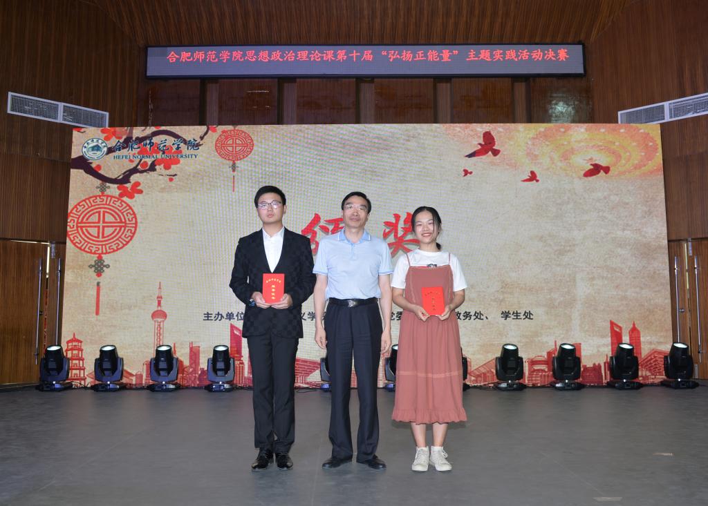 本网讯6月12日下午,以“逐梦前行七十载,青春建功新时代”为主题的思想政治理论课第十届“弘扬正能量”主题实践活动决赛在锦绣校区音乐厅举行。党委书记徐成钢,党委副书记、董事长孙道胜,党委副书记吴昕春、相关单位负责人及参赛团队指导教师、各二级学院同学们到场观看,组织部、宣传部、机关一总支、团委负责人担任评委。