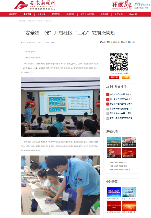 【行知学堂】安徽新闻网报道公司“悦习”行知学堂暑期实践活动
