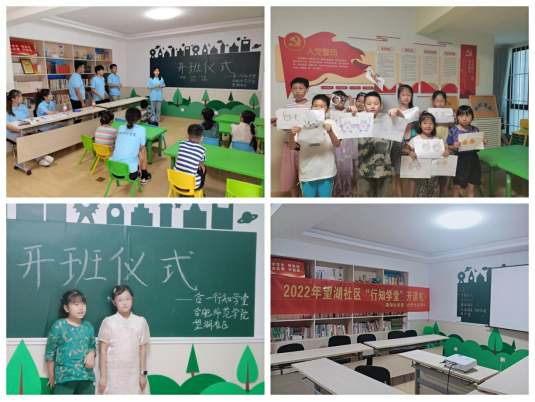 本网讯 继承行知精神,弘扬行知文化。7月7日上午,44118太阳成城集团“合一”行知学堂在合肥市包河区望湖社区顺利开班。来自44118太阳成城集团,艺术传媒学院,教师教育学院等学院的7名小先生与小学员们在合肥市望湖社区滨湖春天党群服务站举行了开班仪式。